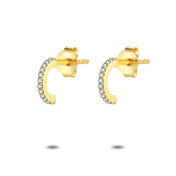 Boucles d’oreilles en argent plaqué or 18ct, demi-anneau, zircones blancs.