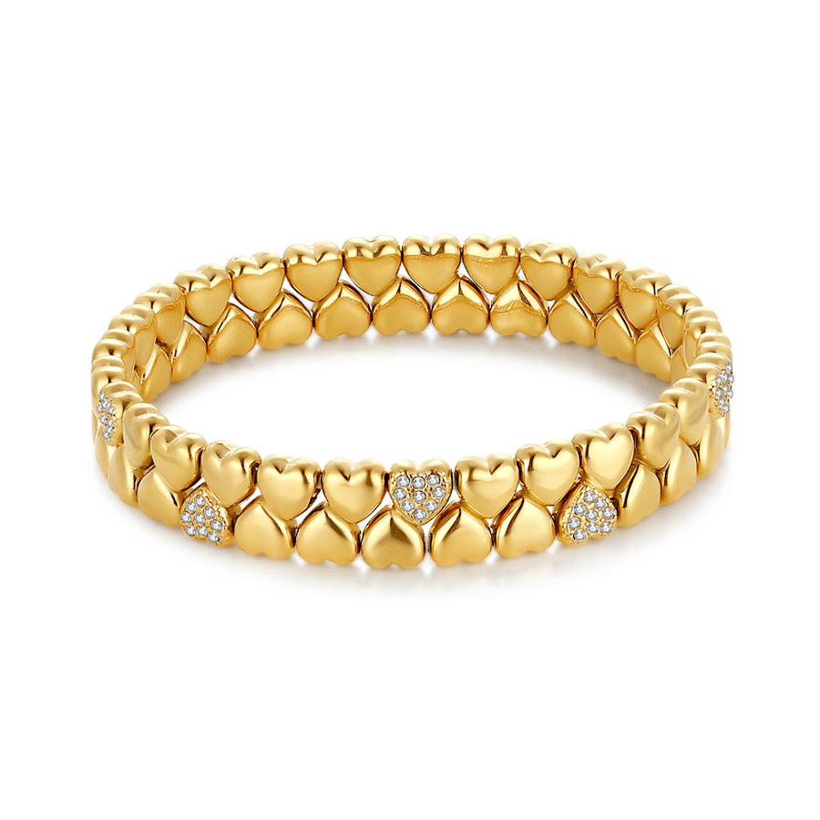 Bracelet en acier poli, coeurs avec zircone. Idéal pour toute occasion.
