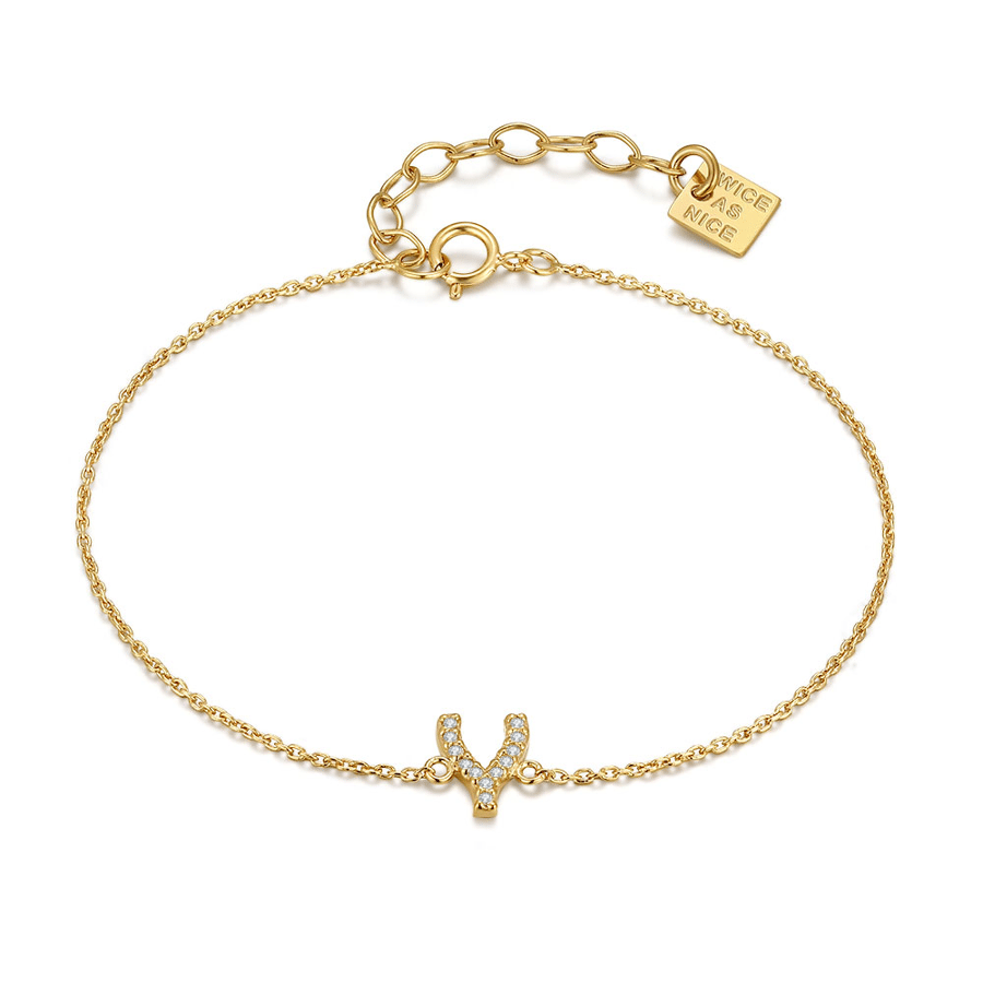 Bracelet en argent, lettre V orné de zircone.
