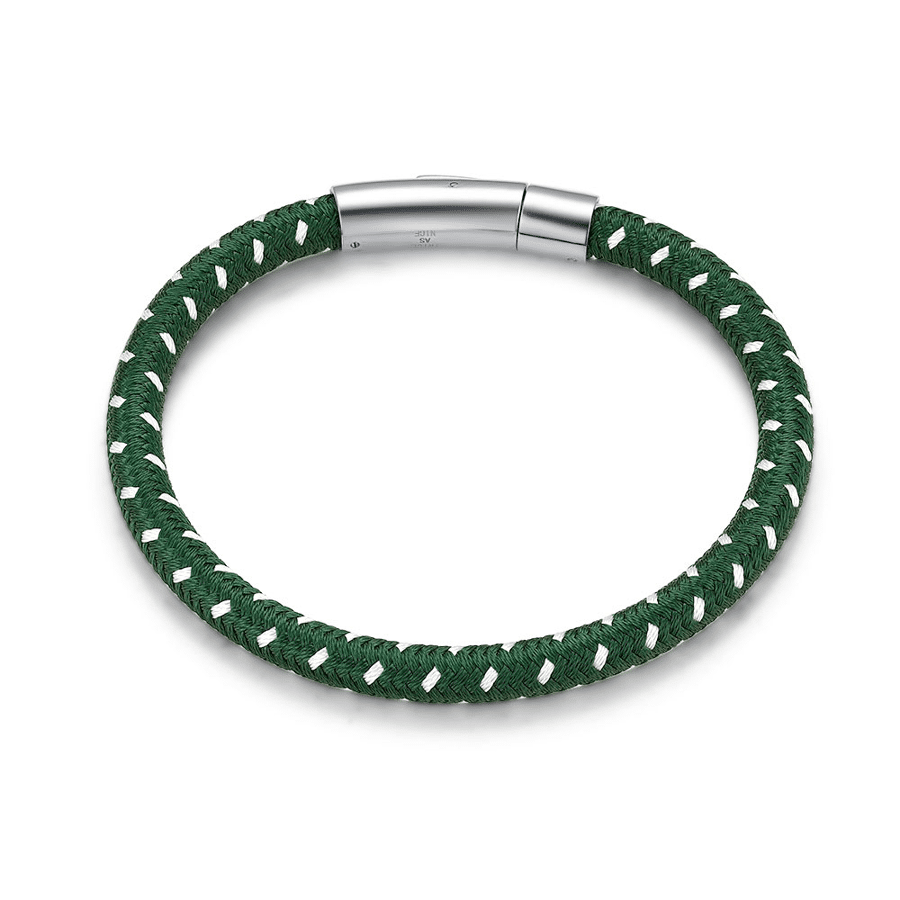 Bracelet en acier poli, tressé vert