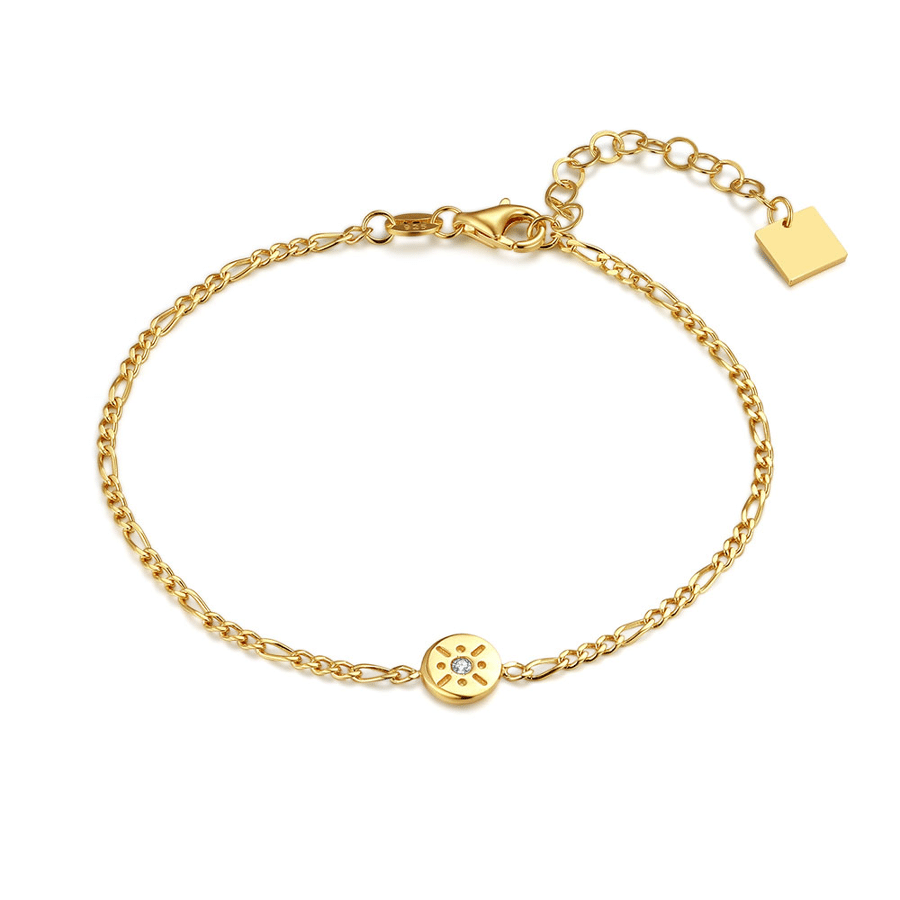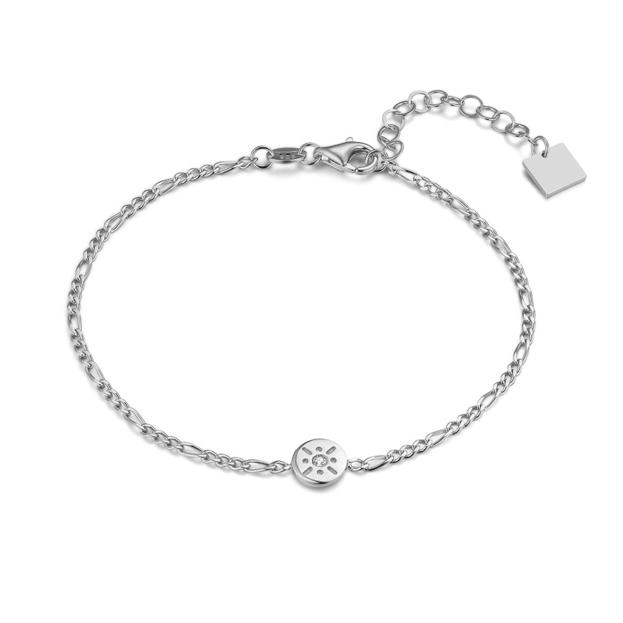 Bracelet en argent, chaîne avec disque rond et zircone.