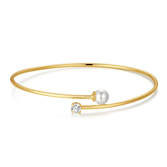 Bracelet en argent plaqué or 18ct, avec une perle blanche et une zircone. Design simple et élégant.