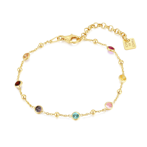 Bracelet en argent plaqué or 18ct, zirconia multi couleur