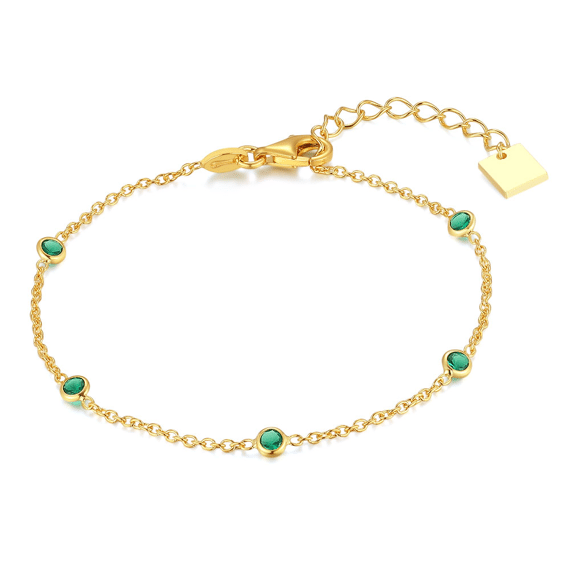 Bracelet en argent, ton or, 5 pierres rondes en zircon vert