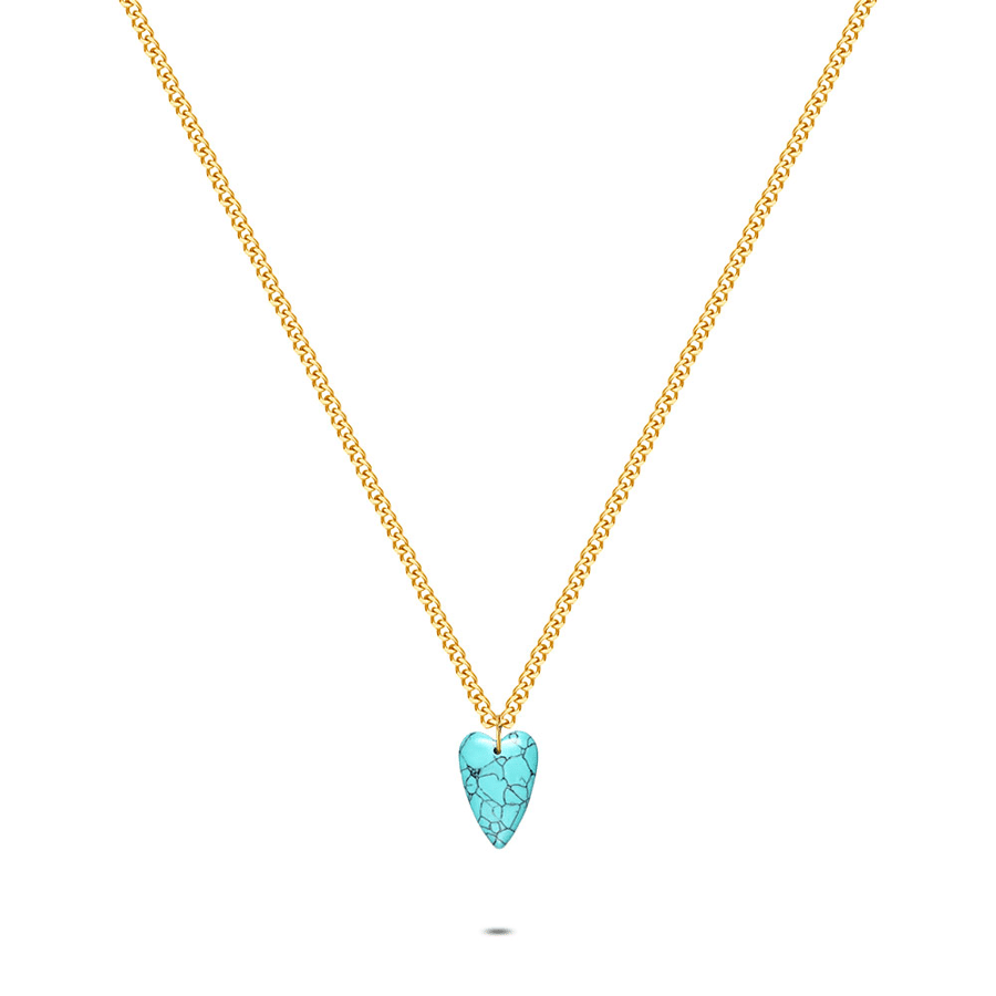Collier en acier poli, pendentif en forme de cœur en turquoise.