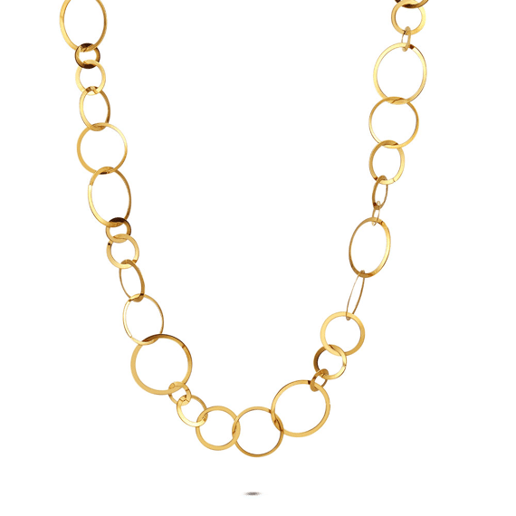 Collier en acier poli, avec des maillons ronds de différentes tailles.