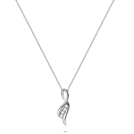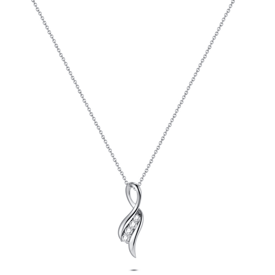 Collier en acier poli, forme ondulée avec zircone. Parfait pour toute occasion.