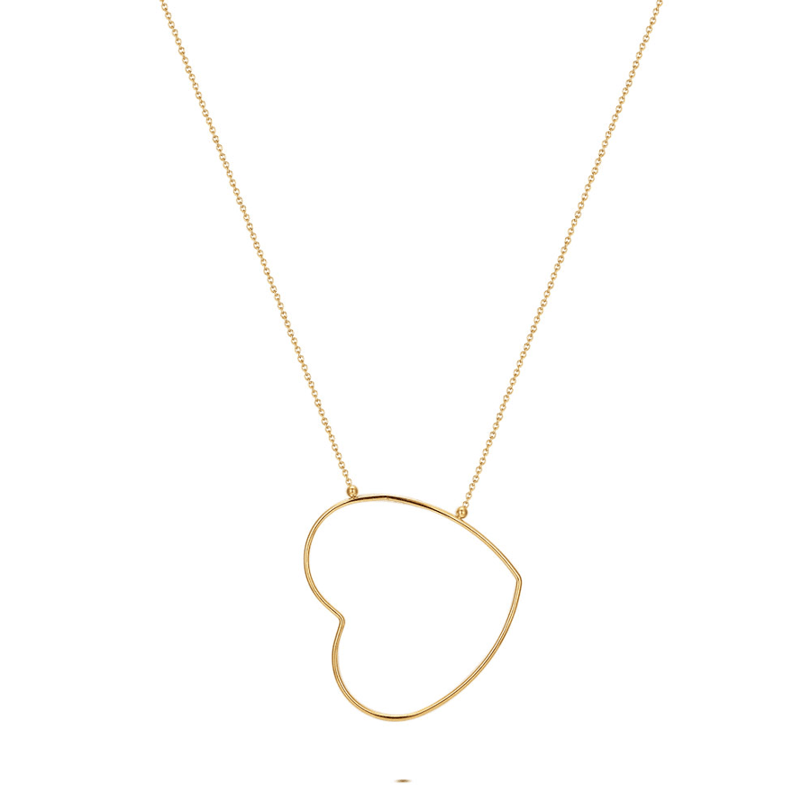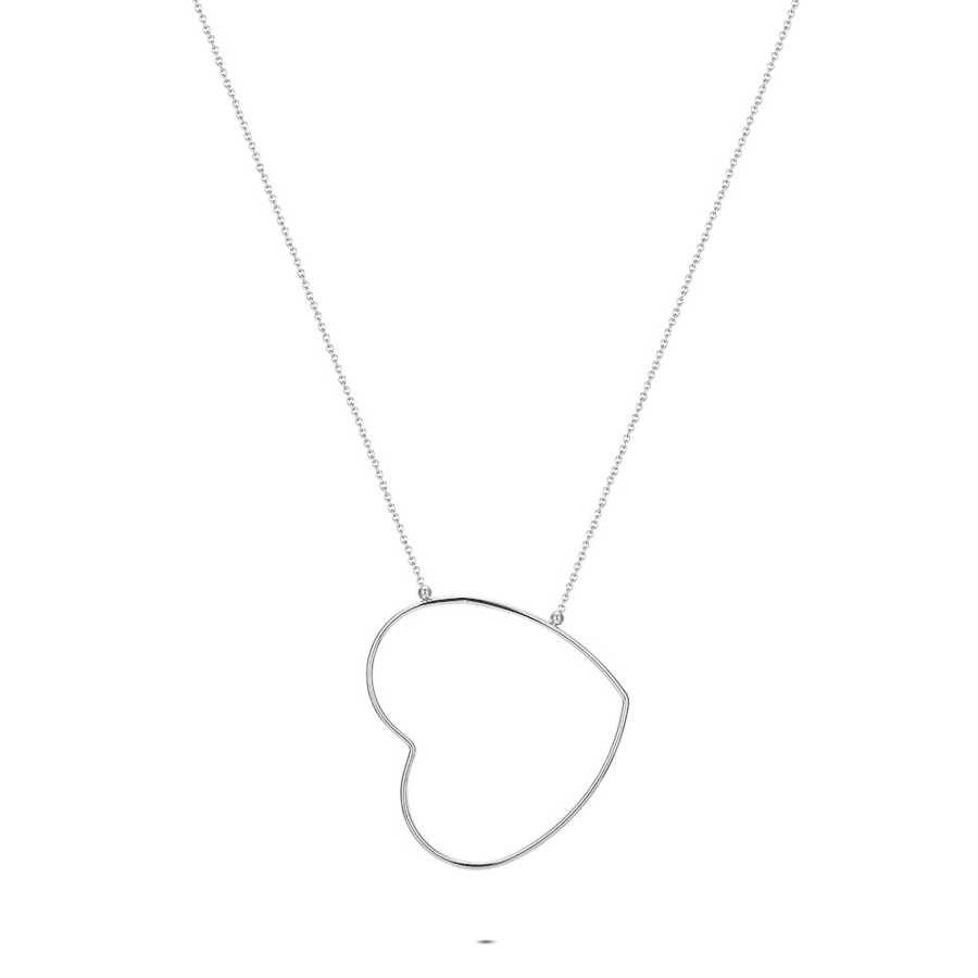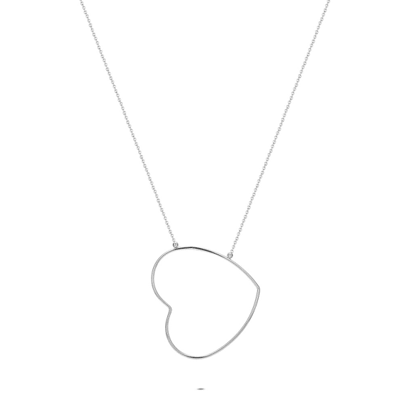 Collier en acier poli, design en forme de cœur avec une chaîne fine.