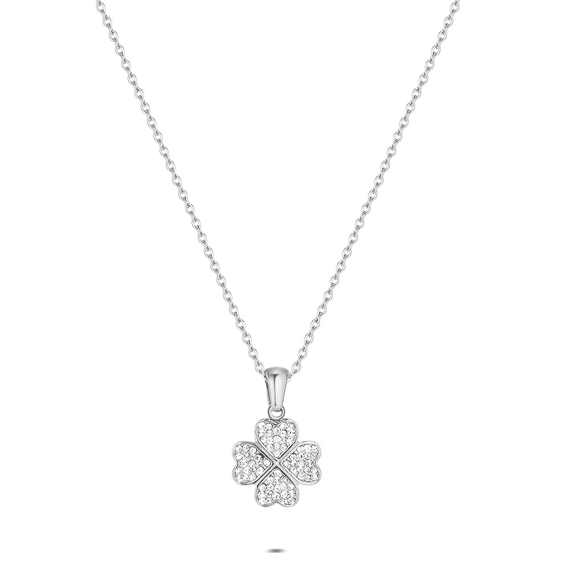 Halsketting in staal, bloemvormig hanger met zircone.