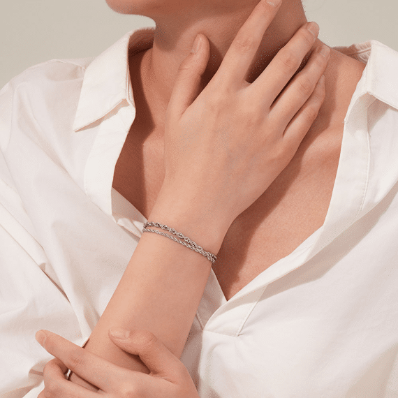 Armband in edelstaal, dikke en dunne gedraaide dubbele ketting.