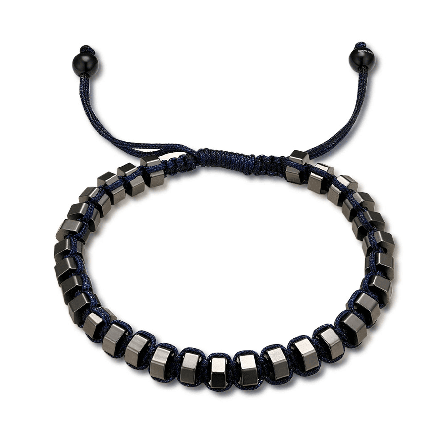 Armband in edelstaal, blokjes met een navy koord.