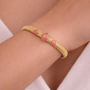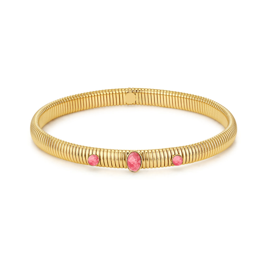 Armband in edelstaal, 3 roze stenen