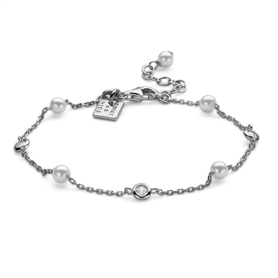 Armband in zilver, 4 pareltjes en 3 zirkonia van 4 mm.