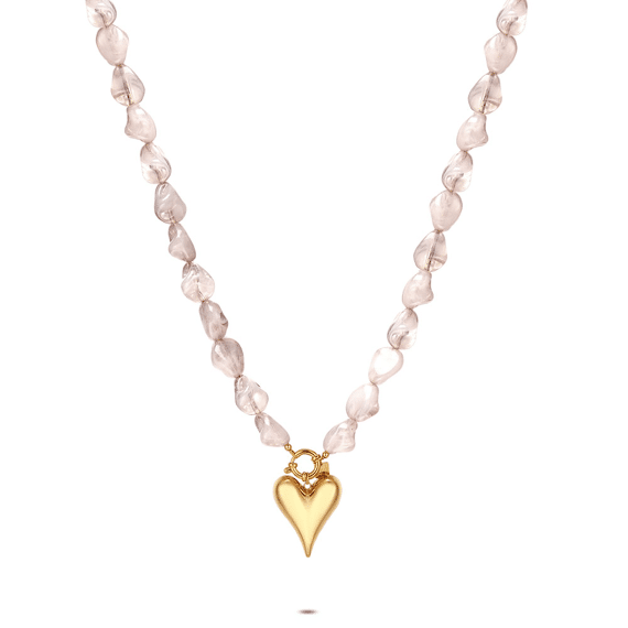 Halsketting in edelstaal, zoetwaterparels en een hartje.