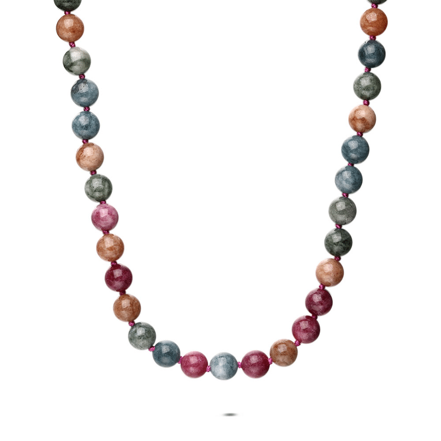 - Product: Halsketting in edelstaal, parels en gekleurde stenen