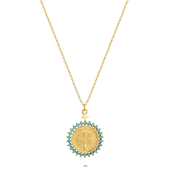 - Product: Halsketting in zilver, met ronde hanger en stenen