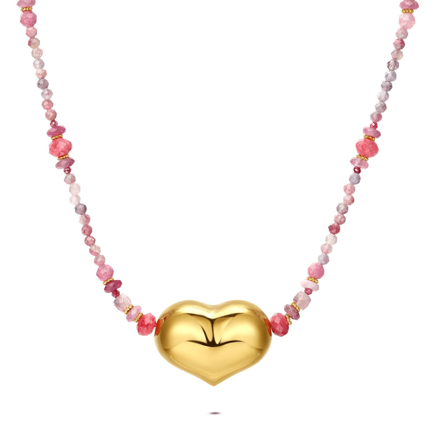 - Product: Halsketting in edelstaal, hart met gekleurde stenen