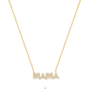 Halsketting in zilver met de naam 'MAMA', versierd met zirkonia.