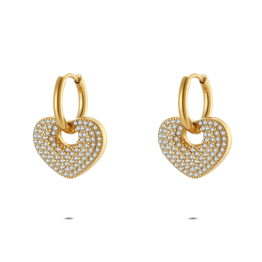 Oorbel in edelstaal, hartvormig met zirkonia. Perfect voor elke gelegenheid.