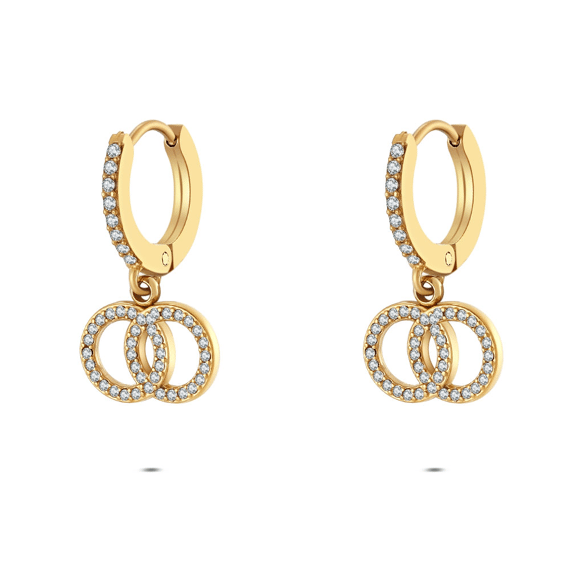 - Product: Oorbel in edelstaal, 2 ringen met zirkonia