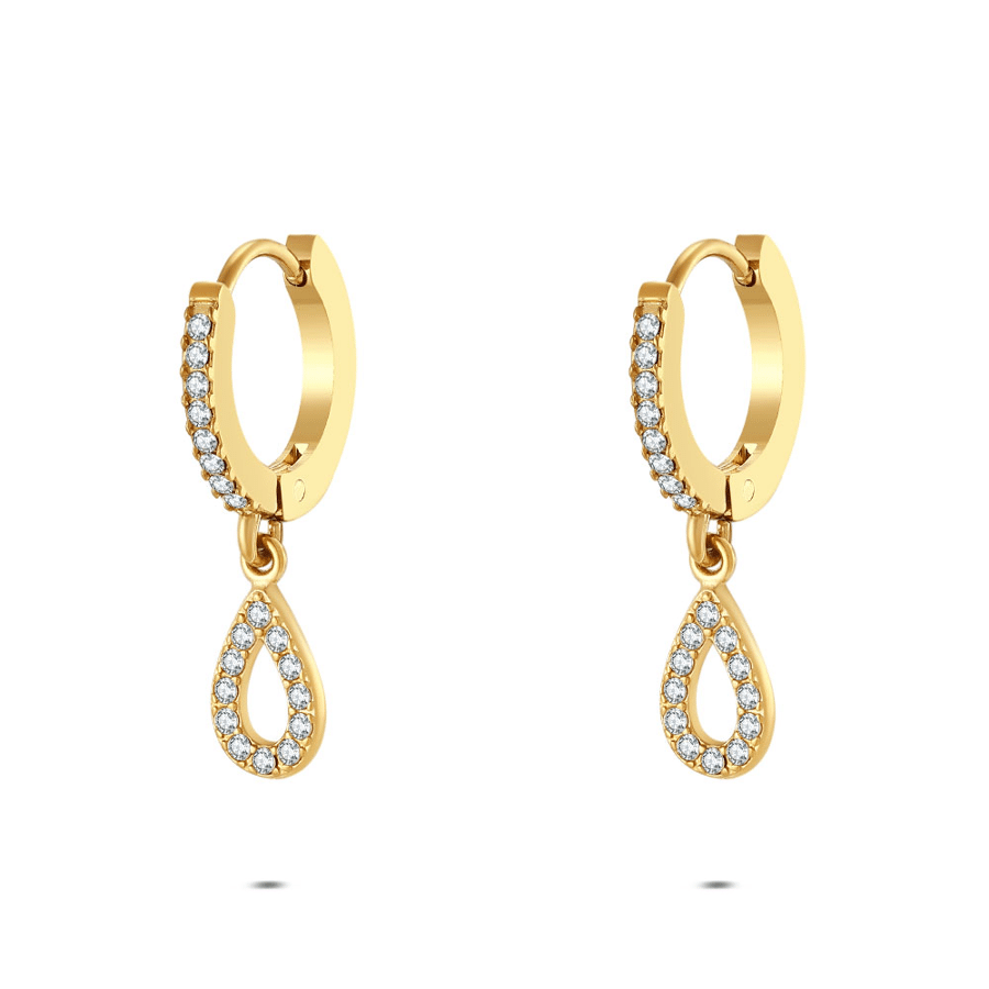 - Product: Oorbel in edelstaal, druppelvorm met zirkonia
