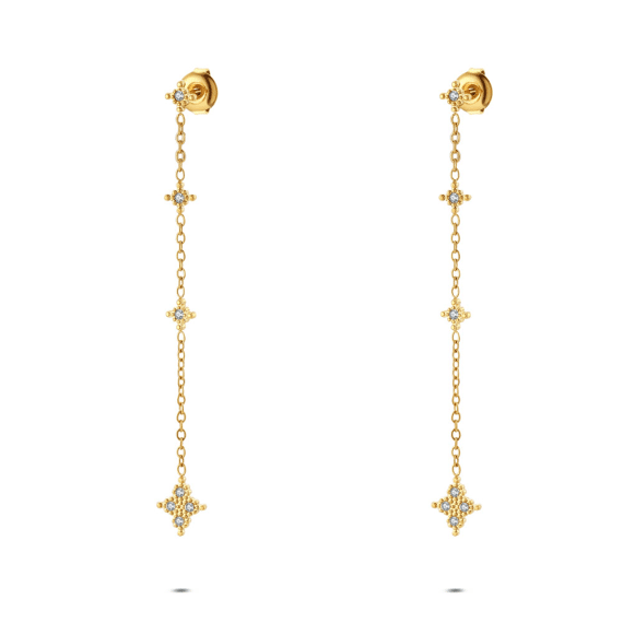 - Product: Oorbel in edelstaal, hangend met zirkonia