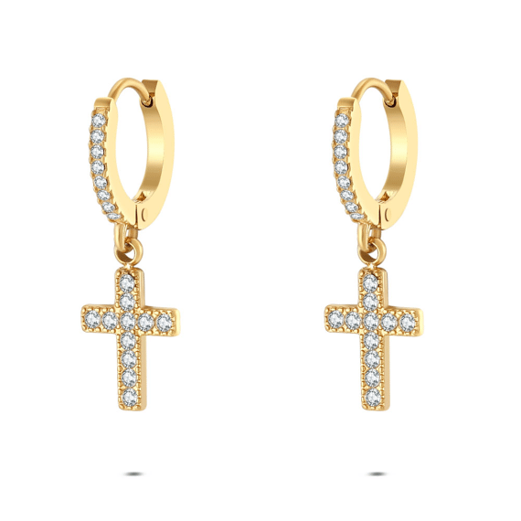 Oorbel in edelstaal met een kruis en zirkonia.