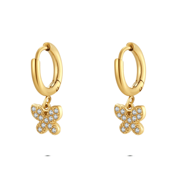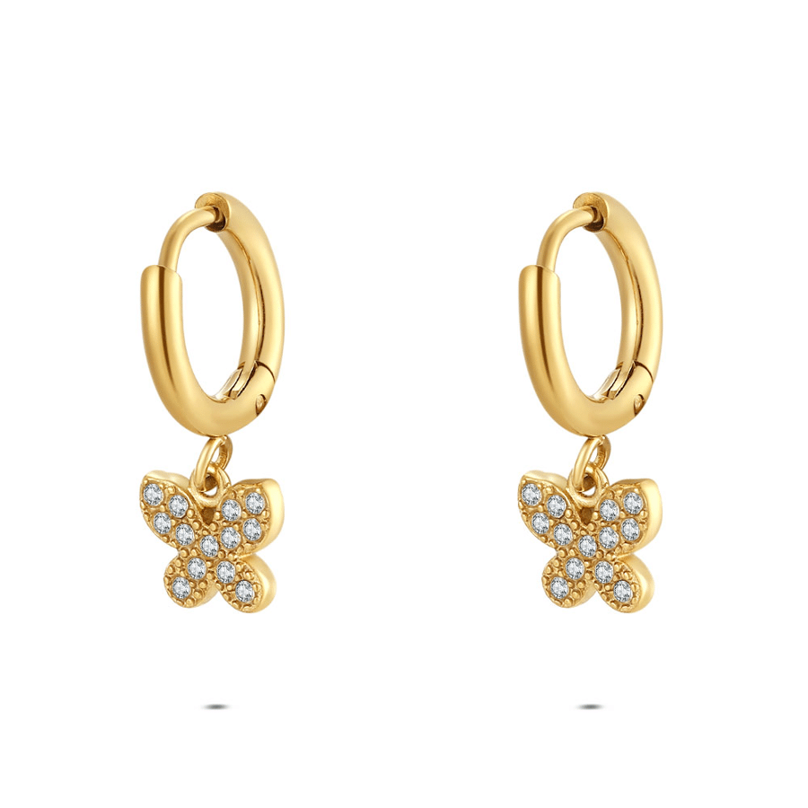 Oorbel in edelstaal met een vlinder, versierd met zirkonia.
