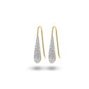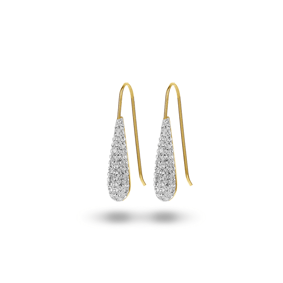 Oorbellen in 18kt verguld zilver, druppel met witte kristallen.