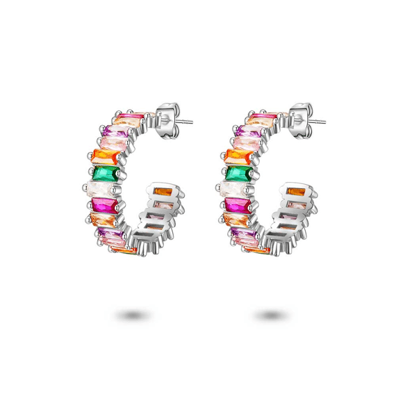 Oorbellen in zilver, anneau ouvert, zircons multicolores baguette, zigzag, 5mm.