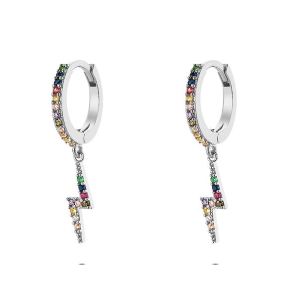 - Product: Oorbellen in zilver, bliksem met gekleurde stenen