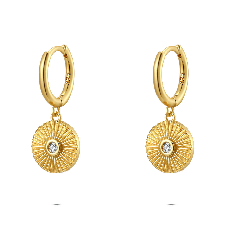oorbellen in zilver, ronde schijf met een centraal detail.