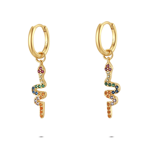 oorbellen in zilver met slangvorm en kleurrijke zirkonia.