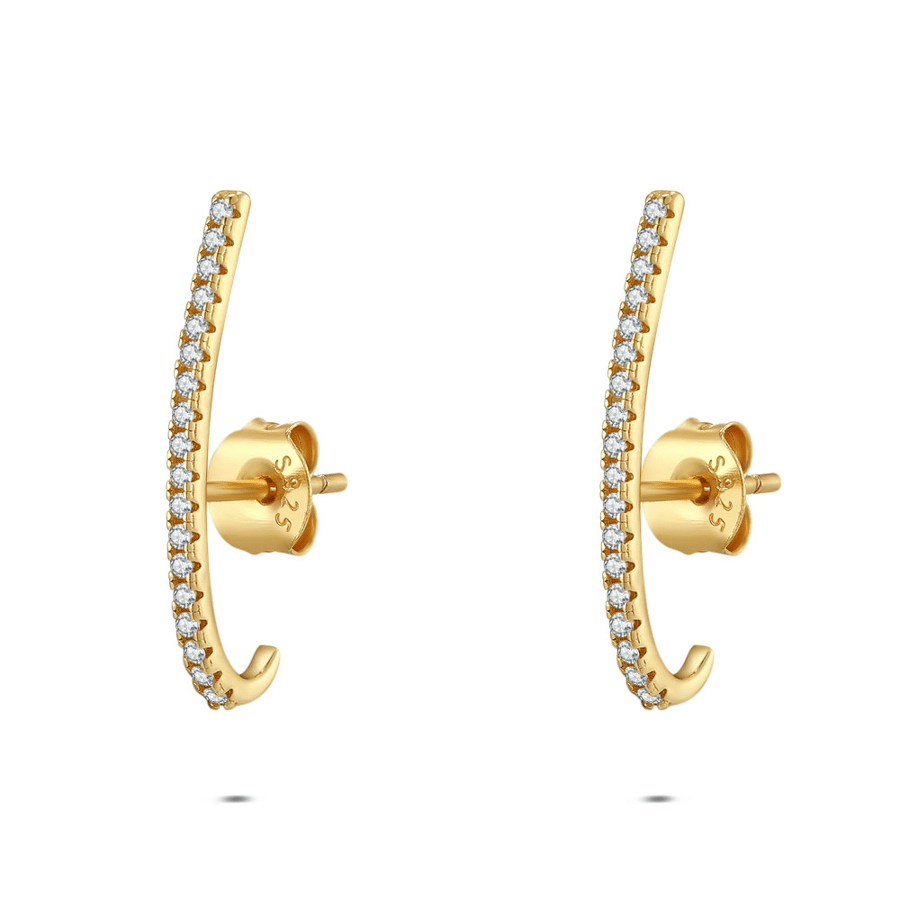 oorbellen in zilver, gebogen ontwerp met zirkonia. Geschikt voor elke gelegenheid.