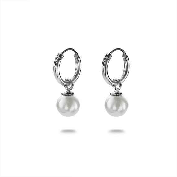 Oorbellen in zilver, oorring met hangende parel van 6 mm.