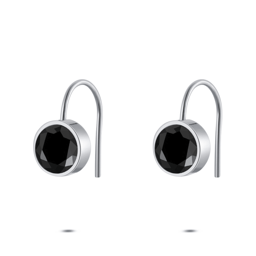 - Product: Oorbellen in zilverkleurig edelstaal, zwart steentje