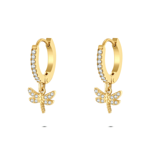 Oorbel in edelstaal, libelle met zirkonia