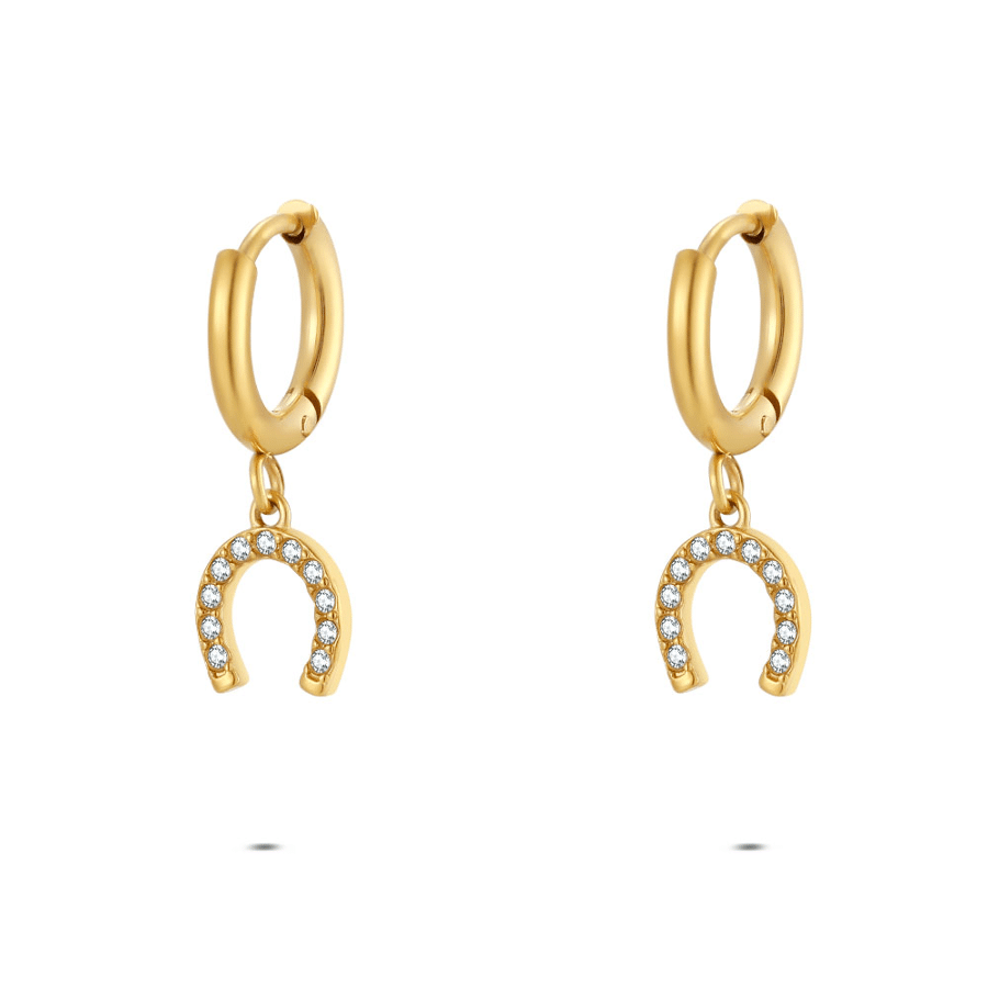 - Product: Oorbel in edelstaal, hoefijzer met zirkonia
