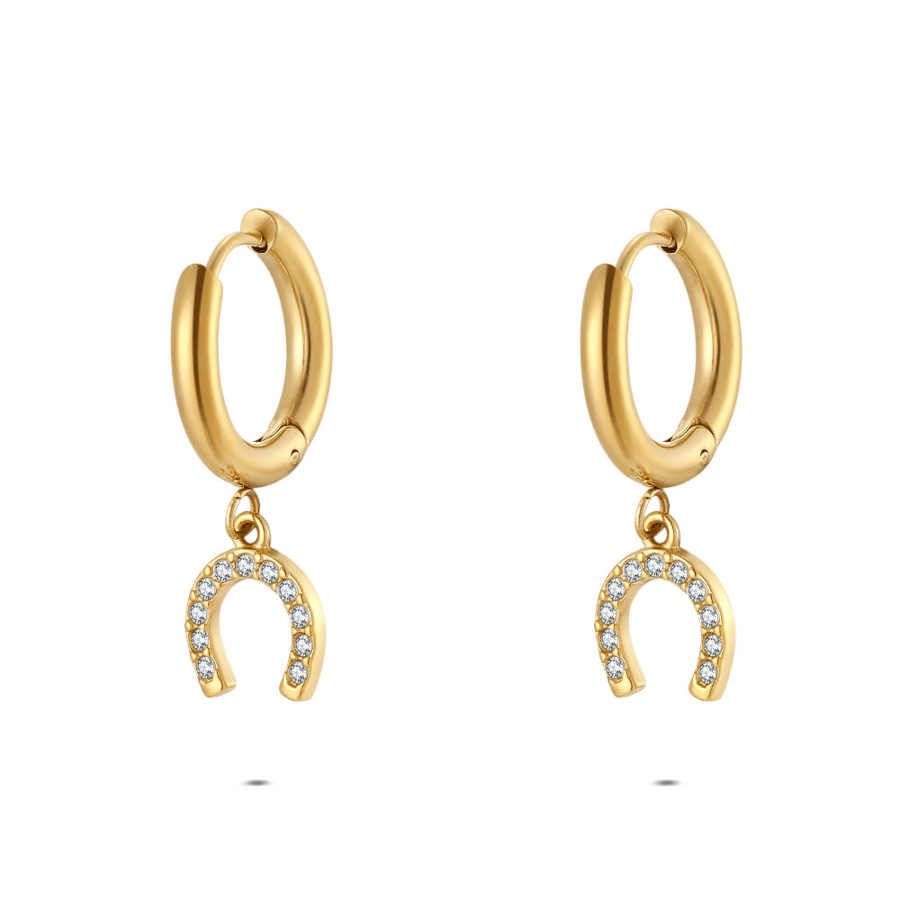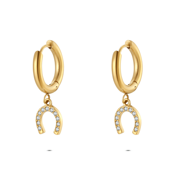 - Product: Oorbel in edelstaal, hoefijzer met zirkonia