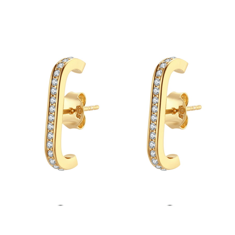 - Product: Oorbellen in zilver, rechte lijn met zirkonia