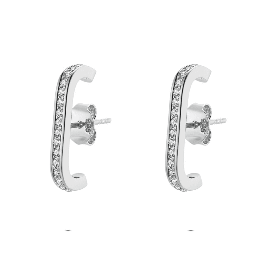 Oorbellen in zilver, rechte lijn met zirkonia. Perfect voor elke gelegenheid.